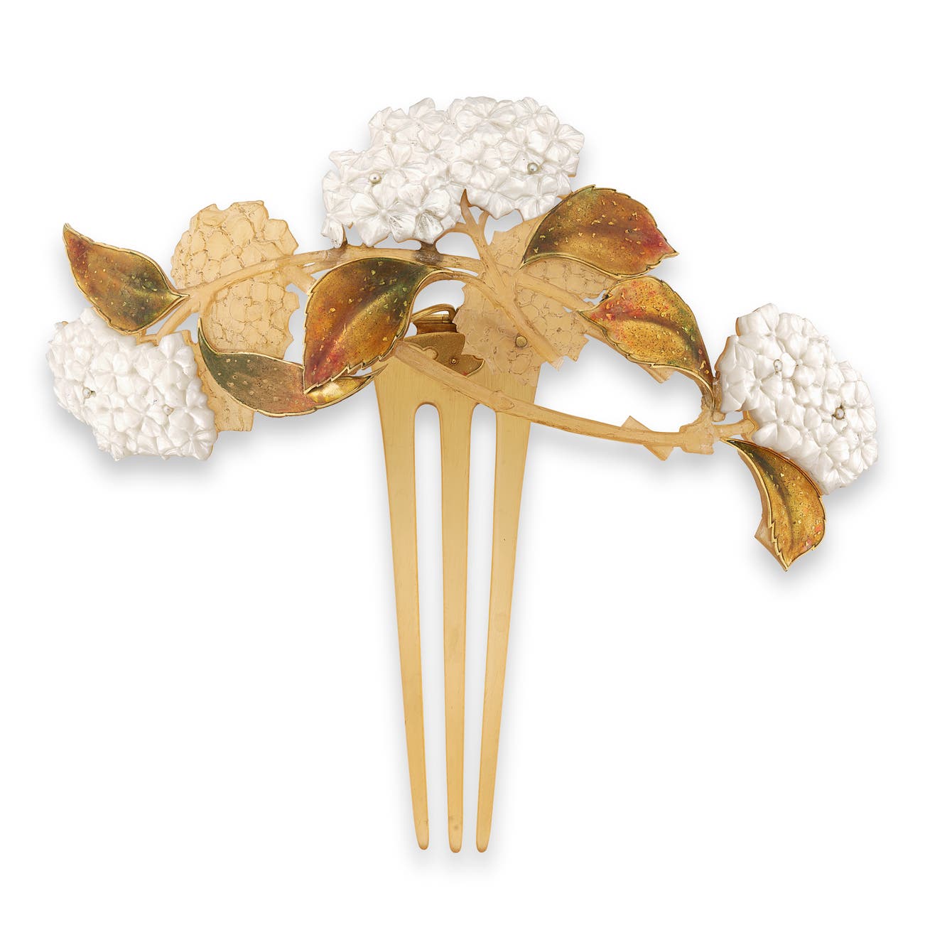 角質、琺瑯配珠母貝髮梳,Lalique,約1900年