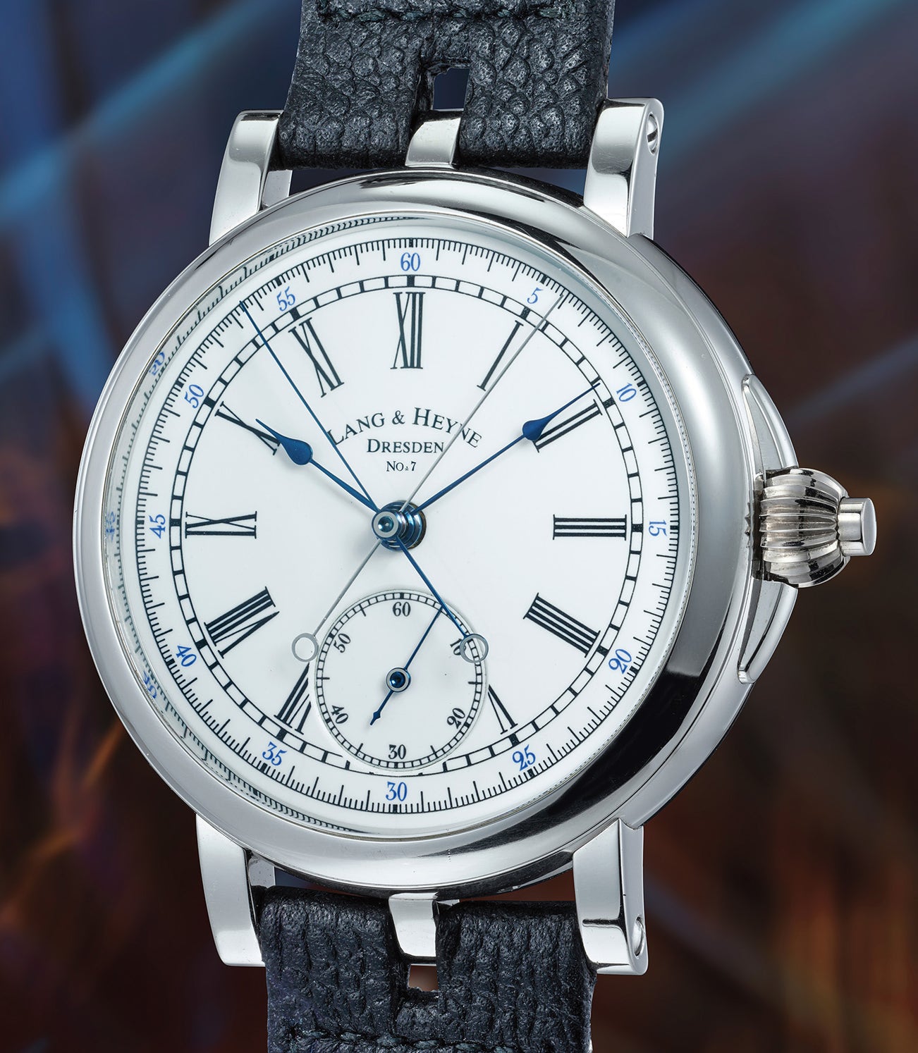 Lang & Heyne,鉑金單鈕計時腕錶,備中心同軸計時分針、琺瑯錶盤。附錶盒、保證書
