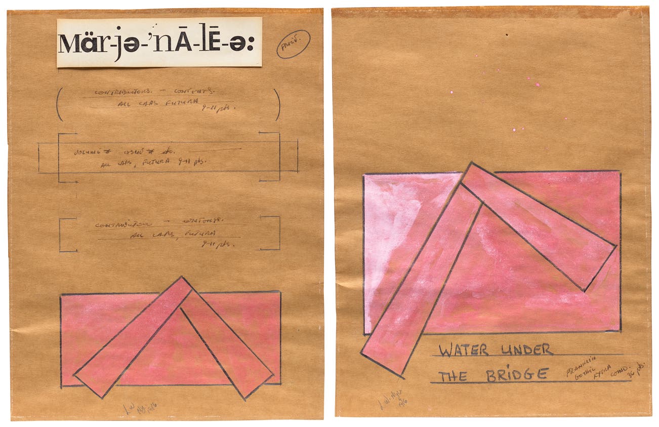 signed with the artist's initials, inscribed and dated 'LW NYC 1986' lower edge of the left part; signed with the artist's initials, titled, inscribed and dated 'L.W. NYC 1986 Water Under The Bridge' lower edge of the right part