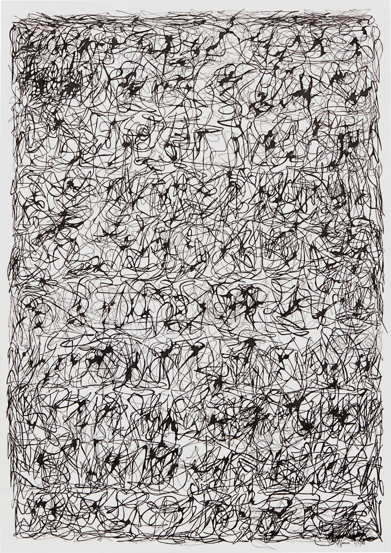 One particularly controversial work, La Civilización Occidental y Cristiana (Western Christian Civilization), was exhibited in 1965 and promptly censured by the Catholic Church, as the sculpture features a store-bought Jesus figure crucified to a U.S. fighter jet. However, Ferrari is probably best known for his "written drawings" that feature compositions of abstracted handwriting created in various mediums, conveying emotion and visual poetry.