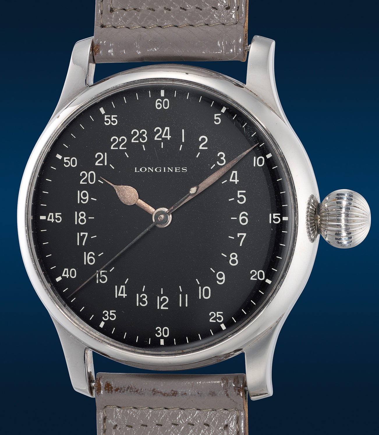 Swissair, the former national airline of Switzerland that operated from 1931 to 2002, approached Longines to create a wristwatch for their pilots. In addition to its oversized pilot-style case with an onion crown, this watch boasted a distinctive 24-hour dial that ensures optimal legibility. Our research indicates that these special watches were exclusively given to Swissair pilots and staff members and were never made available to the general public.