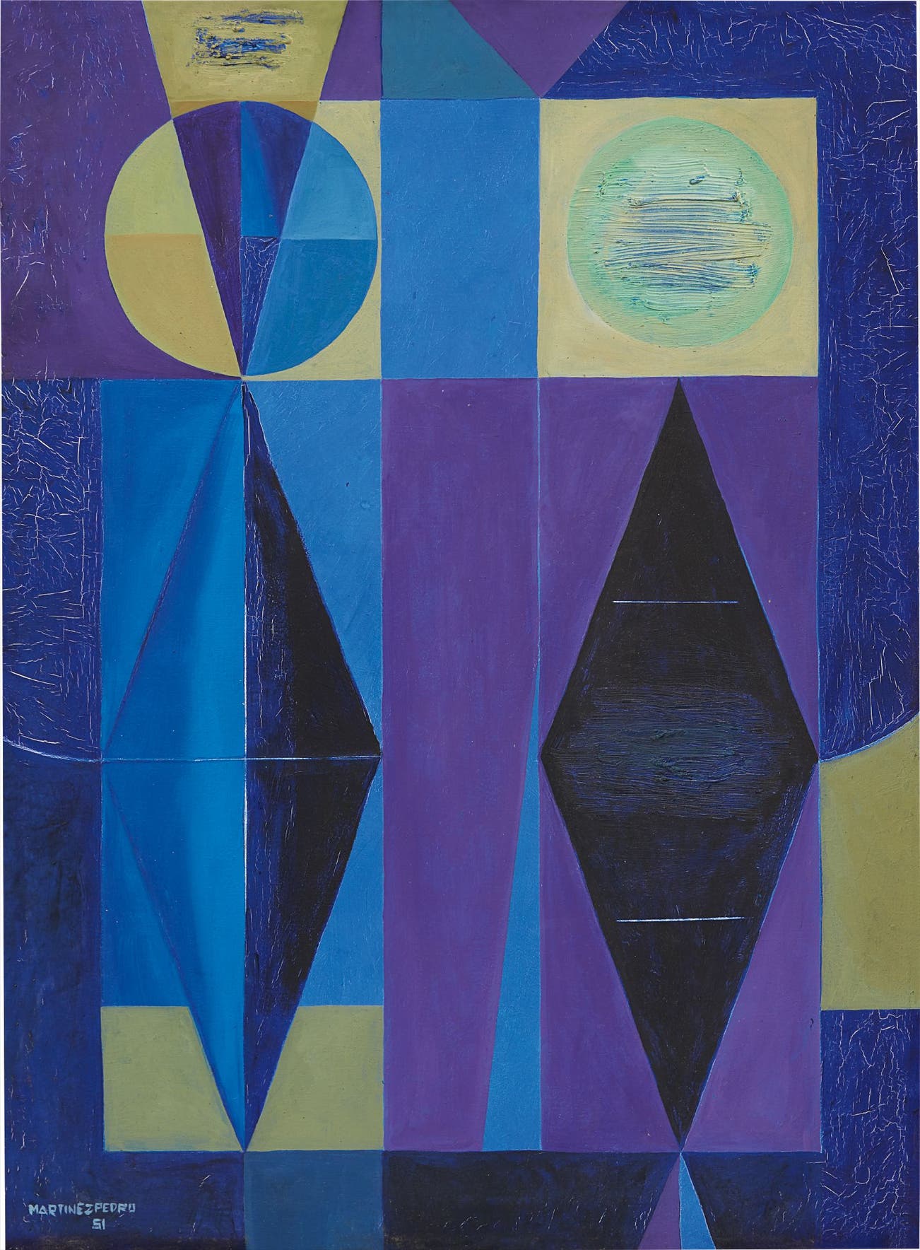 Quickly after returning to Cuba from studying at the Arts and Craft Club in New Orleans, Luis Martínez Pedro participated in commercial illustration and poster-making while working for advertising companies inclusive to Origins magazine. Amid of the 1940s, Luis Martínez’s work evolved from expressionist subjectivity to flawless, geometric abstraction — a significant impetus towards social progressivism and modernity in Cuba during the twentieth century. Together with a constellation of advanced Cuban artists, Mario Carreño and Martínez Pedro, both who are representatives of generation vanguardia received international acknowledgment when their work was exhibited at the Museum of Modern Art in 1944.