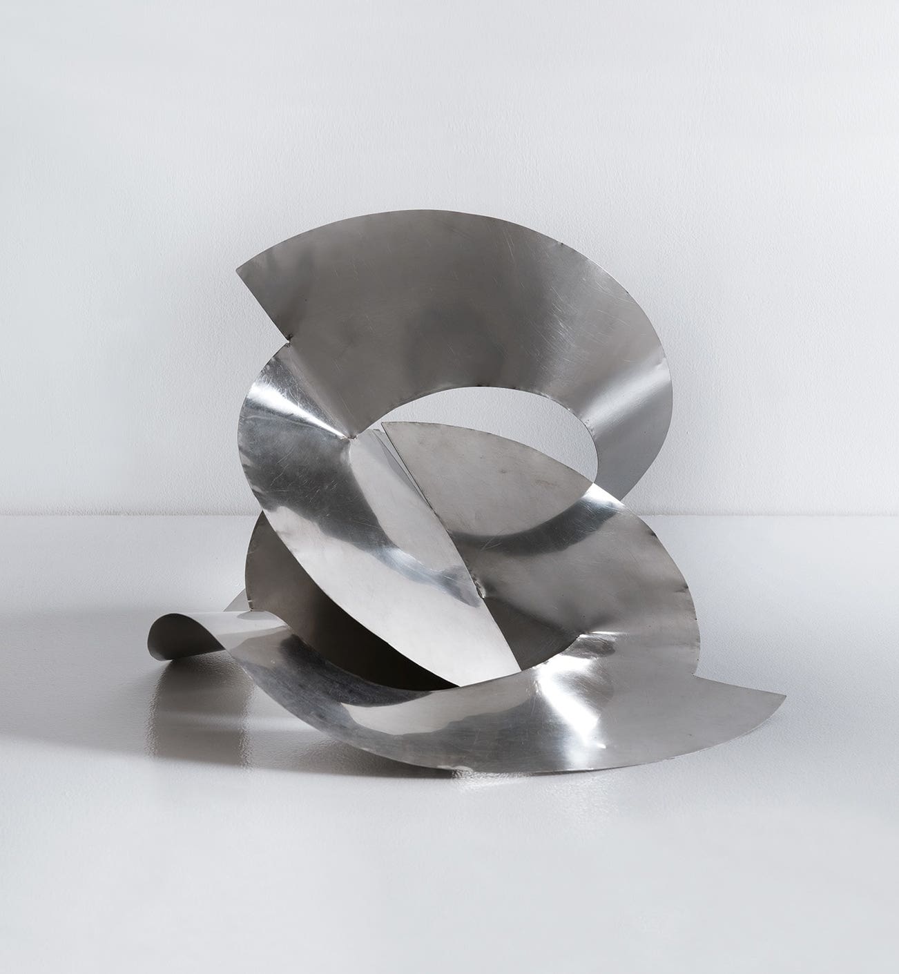 Executed in 1963, O antes é o depois is a rare work from Lygia Clark’s acclaimed Bicho series, which represented a critical juncture in her practice as she shifted away from painting to metal sculpture and performance. Carefully constructed from malleable strips of aluminum, O antes é o depois inscribes geometric line in space. While engaging in dialogue with Russian Constructivism’s groundbreaking deconstruction of pictorial language through metal sculpture, the work also reflects the organic dimension of Clark’s art, rooted in mid-century Brazilian countercultural ideas on the body and living things. A founding member of the 1950s Brazilian Neo-Concrete movement, Clark’s conceptual legacy has long been celebrated in Brazil, where she is credited for her radical investigations into the relationship between the object and the viewer. Over the past few decades, Clark’s legacy has been re-examined internationally, celebrating her remarkable practice as a bridge between the legacy of the modernist avant-gardes and contemporary sculpture. The present work was exhibited in a traveling show throughout Europe beginning at the Fundació Antoni Tàpies, Barcelona in 1997, while more recently another variant featured prominently in Clark’s major retrospective at The Museum of Modern Art, New York in 2014. Notably, the San Francisco Museum of Modern Art just acquired one of the Bicho works for their collection earlier this year.