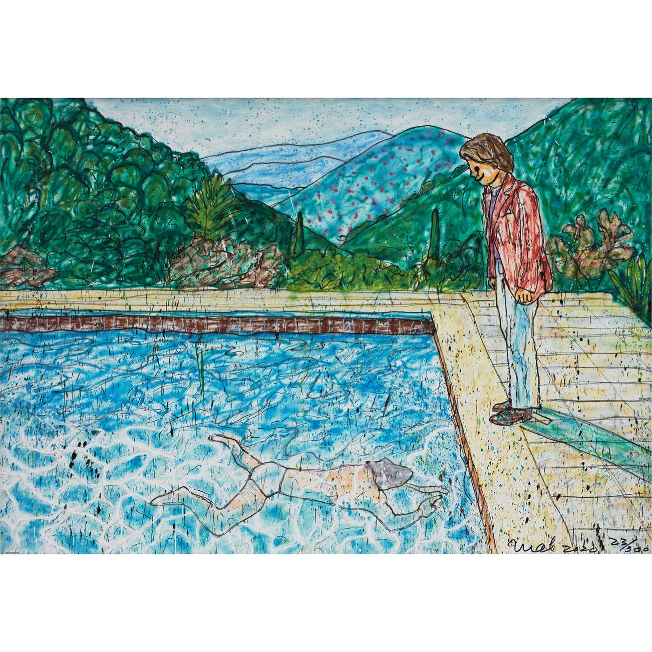 《藝術家肖像(游泳池與兩個人像)II(靈感自大衛·霍克尼)》