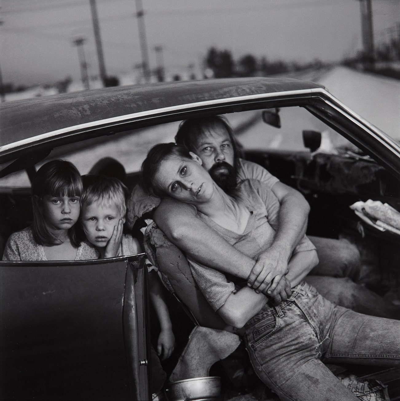 《無家可歸的達姆一家在車裡,加州洛杉磯》