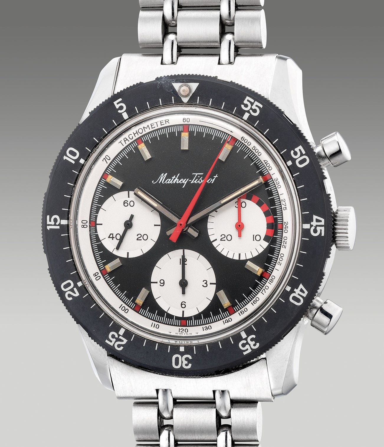 Mathey-Tissot,罕有,精鋼計時腕錶,約1970年製。附錶盒、空白證書、配件