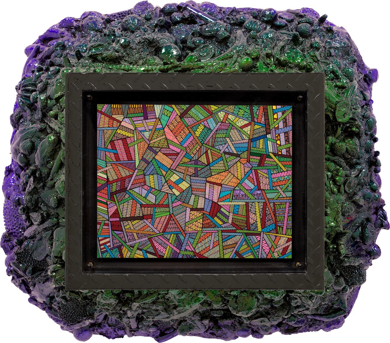 ink, marker and enamel on paper, in artist's frame