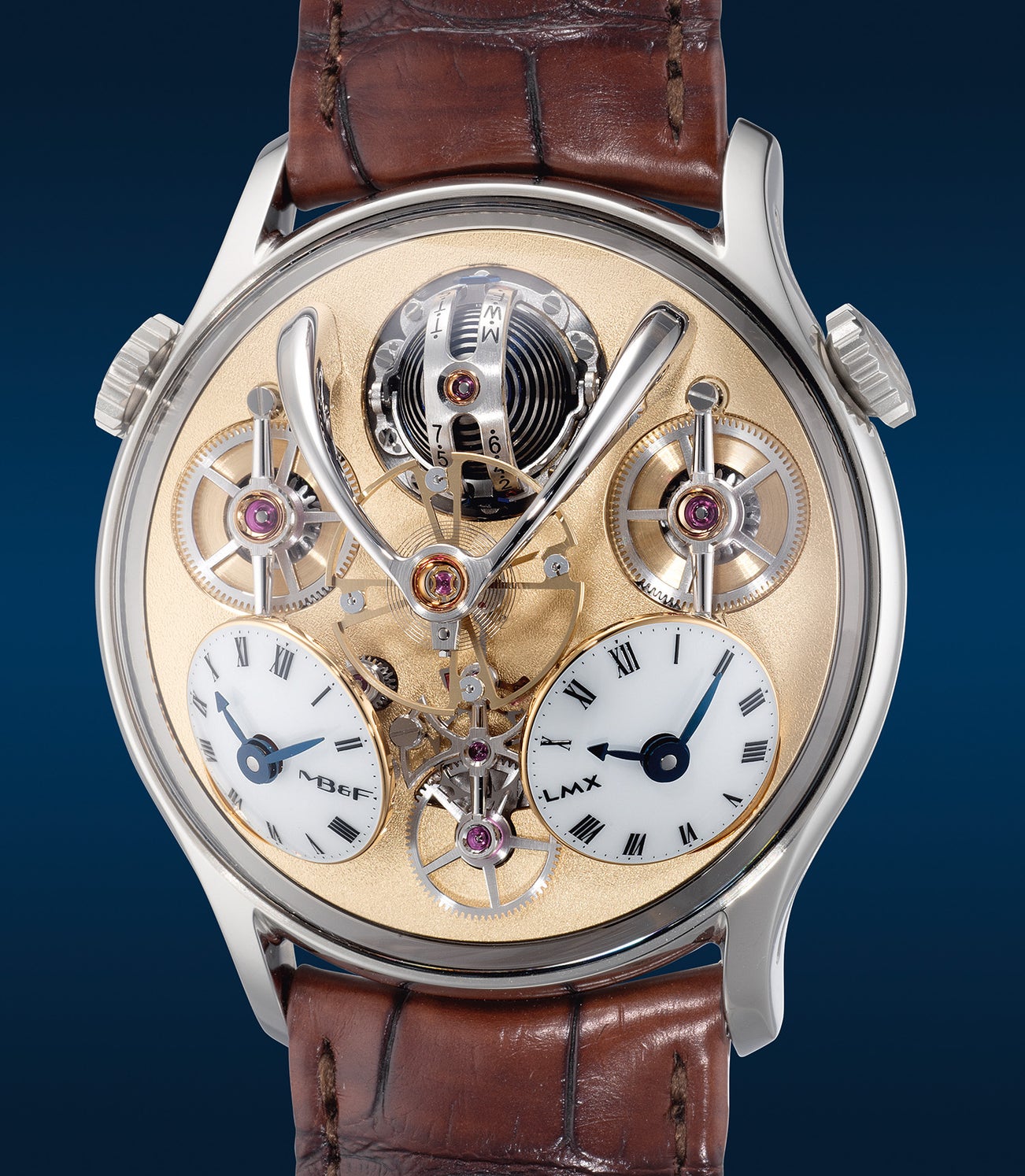 A true gem of horological design and technical prowess the present LMX in golden brass is numbered lucky 18 from the collection.