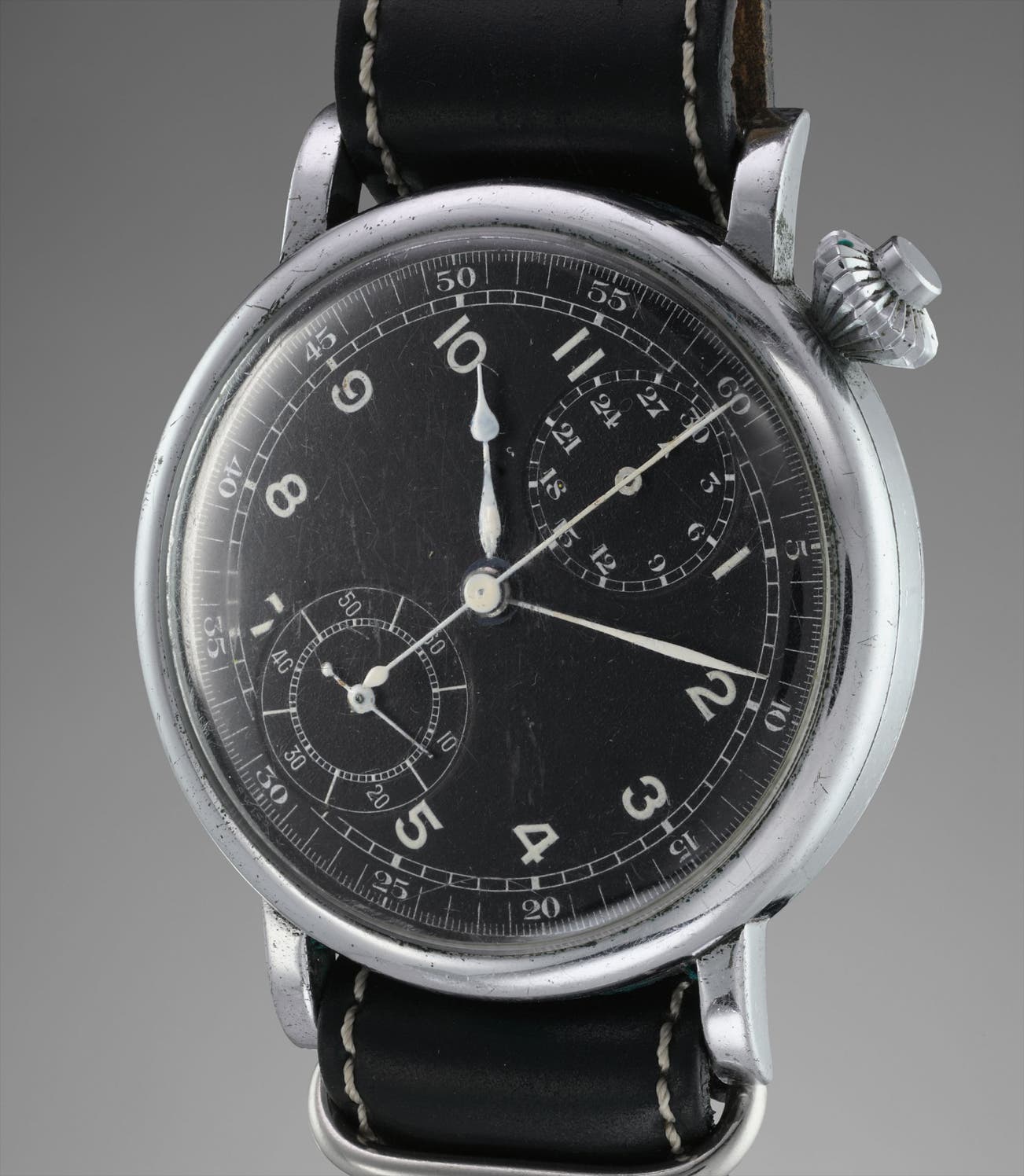 Amongst these specifications the watch was to have an offset dial, large crown and chronograph pusher easy to operate whilst wearing a glove, large Arabic numerals, 30 minutes counter and continuous sub seconds dial.