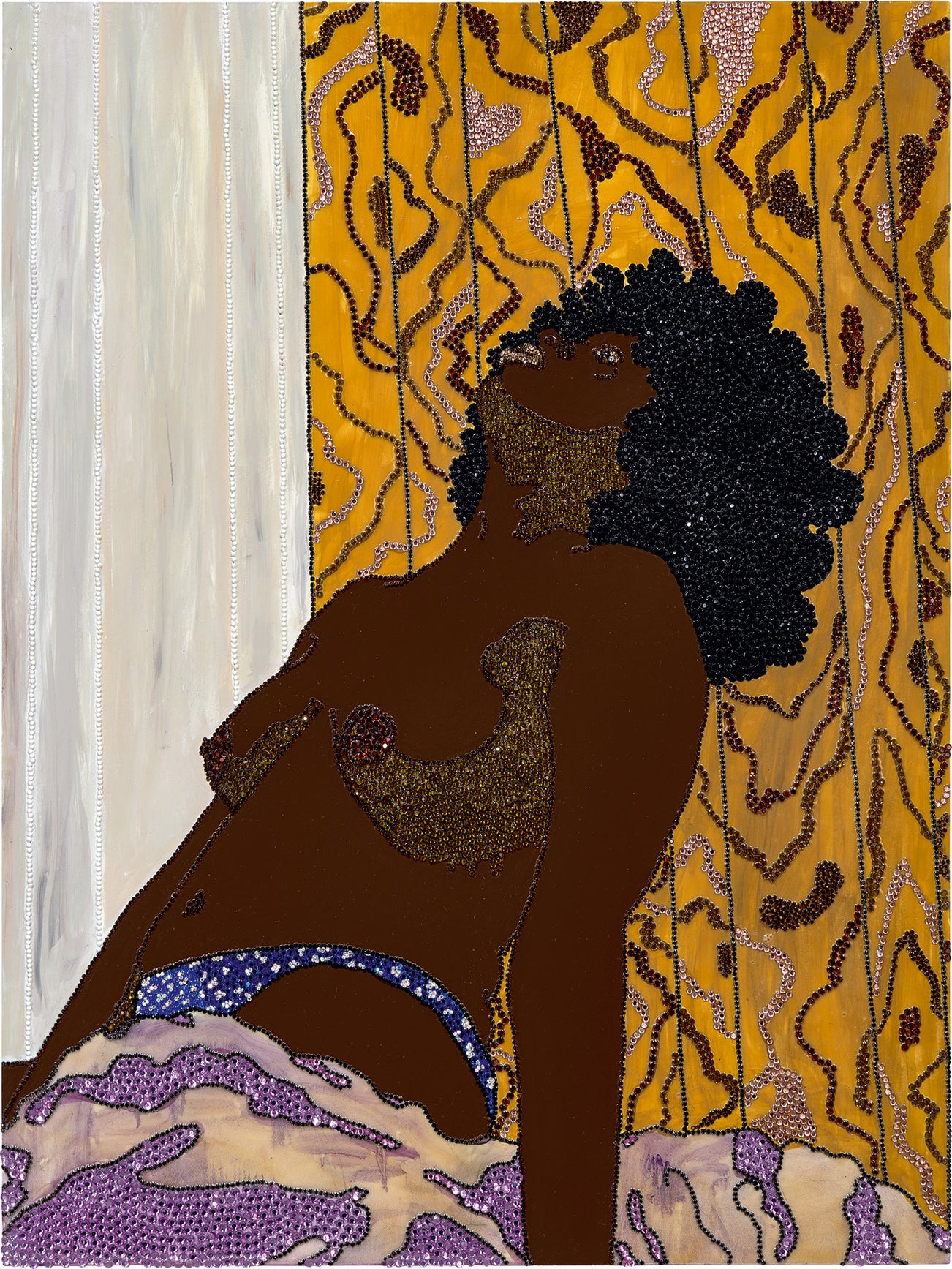 American | 1971Glamour and feminism need not be foes, as evinced by the wonderful work of Mickalene Thomas. The artist examines these qualities through the lens of the African-American female experience. Whether with her rhinestone-inflected, '70s-glam-inspired portraits of black beauty and power or her photographic installations of her mother's living room, Thomas personalizes while aestheticizing a visual conversation about race. By tackling classical art historical themes, she writes African-American aesthetics into traditional conventions.
