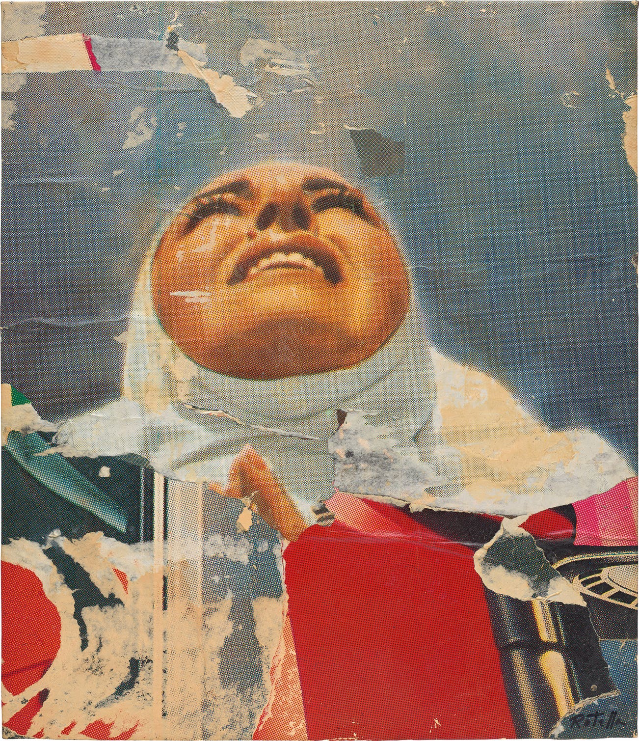 signed 'Rotella' lower right; further signed, titled and dated '"SUOR MARIA" Rotella 1962' on the reverse