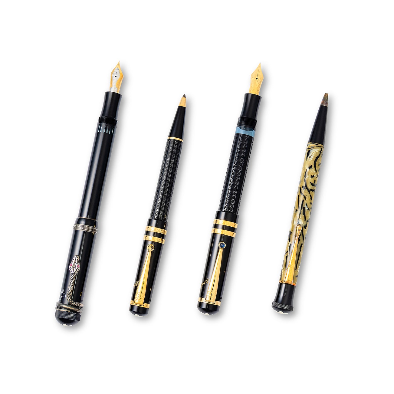 Fyodor M. Dostoevsky, 1997. Gold and black resin fountainpen, signed Montblanc, numbered, length approximately 144mm, fitted case.