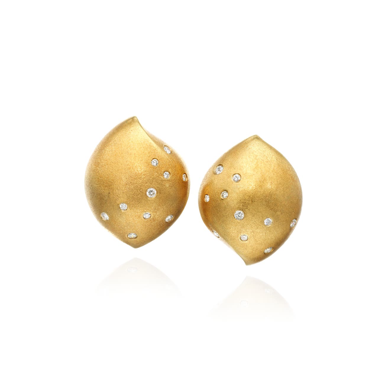 Of sculpted design, decorated with brilliant-cut diamonds, mounted in 18k yellow gold, measuring approximately 1 1/4 inches, signed Naomi Kurita.