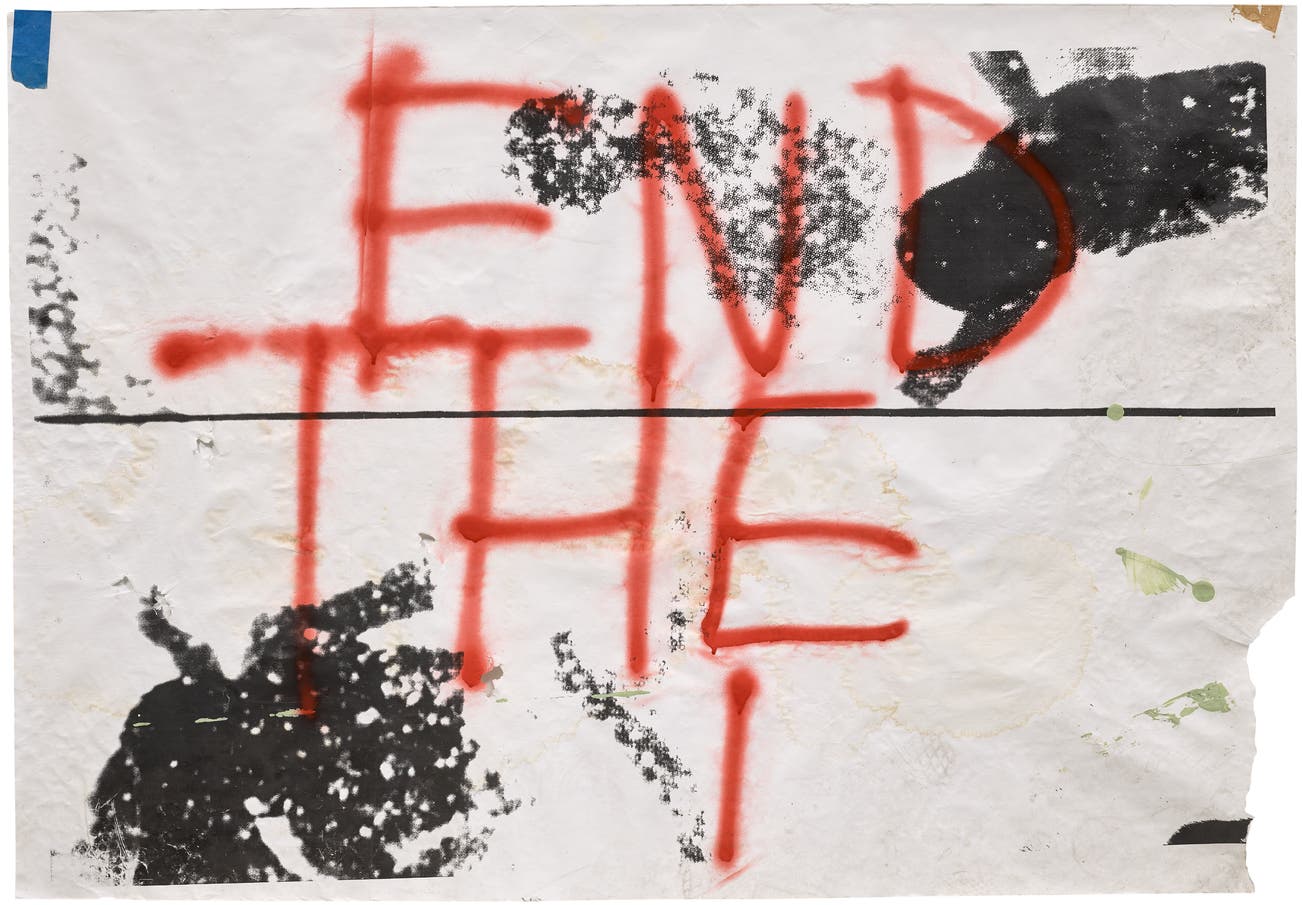 dirt, latex, spray paint and painter's tape on Xerox paper