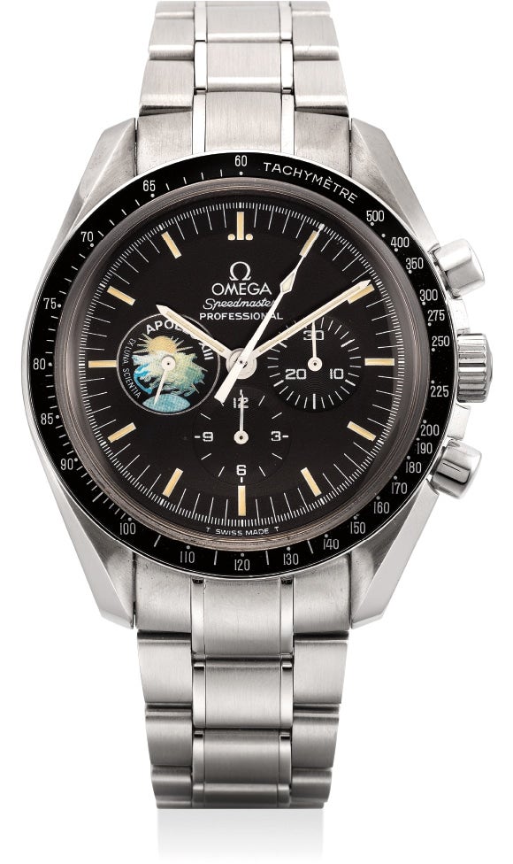 In celebration of the 25th anniversary of the events in 1970, Omega released the Apollo 13 limited edition Professional Speedmaster in 1995. Produced in 999 examples, the chronograph’s subsidiary seconds features the mission’s logo. The watch, No. 959, features the caliber 861 that was first introduced in 1968, as an upgrade to the caliber 321. Present in excellent overall condition, the Apollo 13 is a classic watch, and reminder of the events in 1970. The present watch was sold to Hong Kong on February 23rd, 1996.