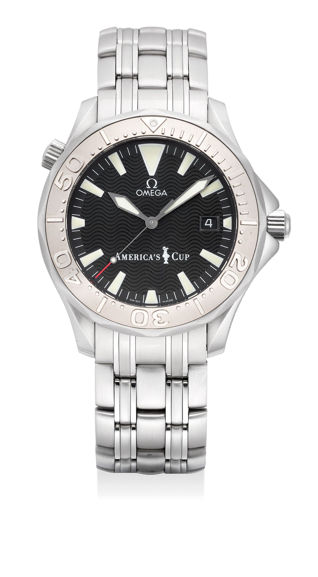歐米茄,「Seamaster America's Cup」型號2833.50.91,精細,限量版精鋼自動上弦鏈帶腕錶,限量發行9999枚,編號第388號,2000年製。附錶盒、原裝證書、配件