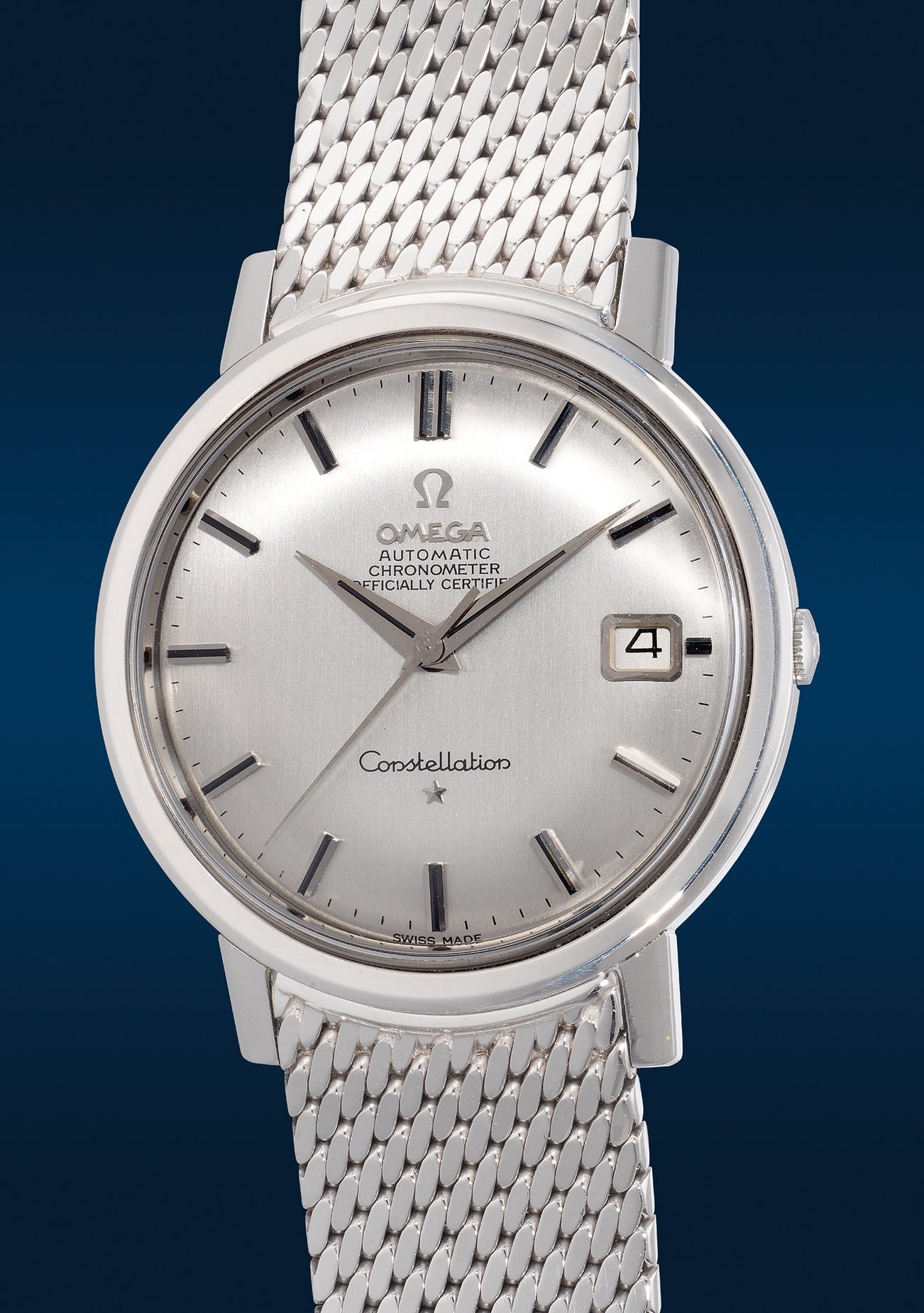The present example is offered in excellent condition with the original plexiglass bearing the Omega logo at the centre. Further presented with a white gold Milanese braided bracelet, this beautiful white gold example is an epitome of elegance and a highly wearable piece of artifact attesting to Omega’s continual pursuit of perfection and precision.