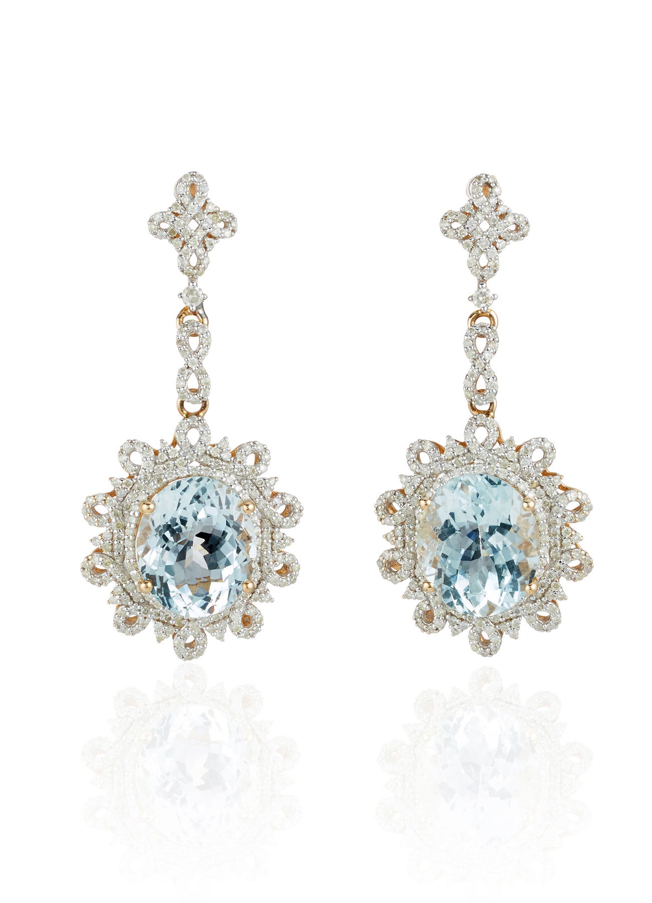 A Pair of Aquamarine, Diamond and Gold Earrings