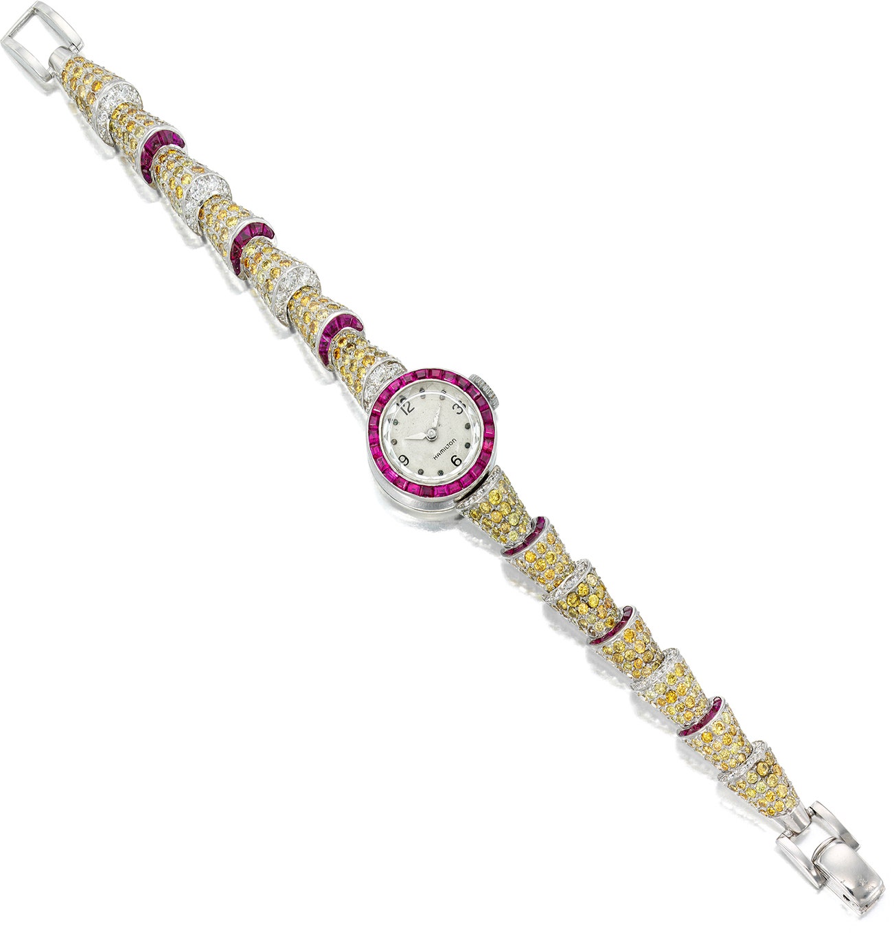 「Cornucopia」彩色鑽石、鑽石配紅寶石腕錶,Oscar Heyman & Brothers for Hamilton,1949年
