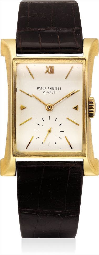 百達翡麗,精細及罕有,18K黃金長方形腕錶,“Eiffel Tower”,型號2441,1951年製