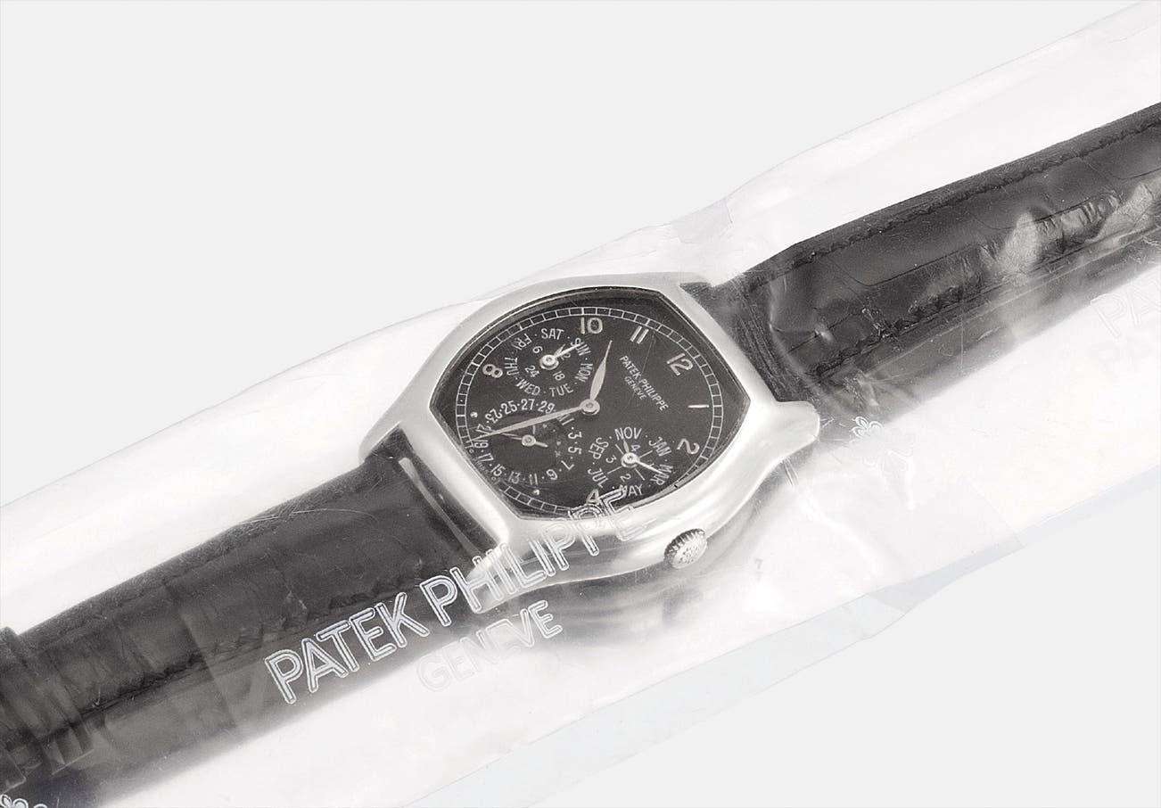 百達翡麗,精細及罕有,鉑金酒桶形自動上弦腕錶,配萬年曆、月相、24小時及閏年顯示,型號5040,附證書及盒子,原廠封套,2007年製