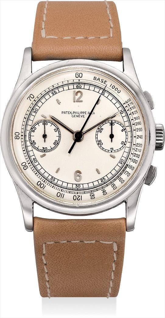 百達翡麗,非常精細及重要,不銹鋼計時腕錶,型號530,附證書,1943年製