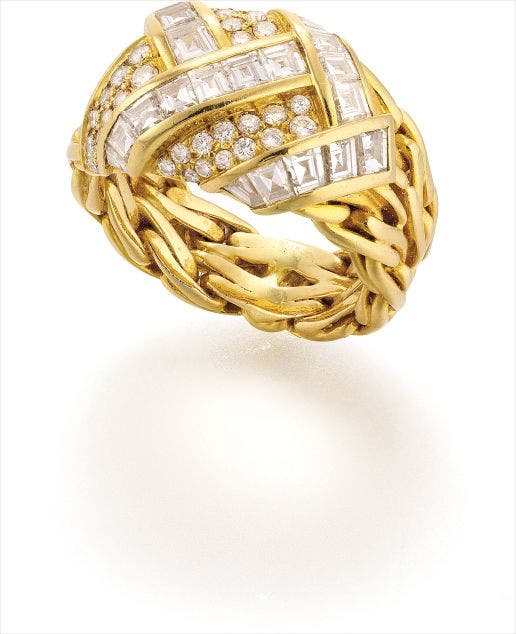 百達翡麗,非常精細及罕有,18K黃金鑲鑽石戒指,型號9682/001,約1991年製