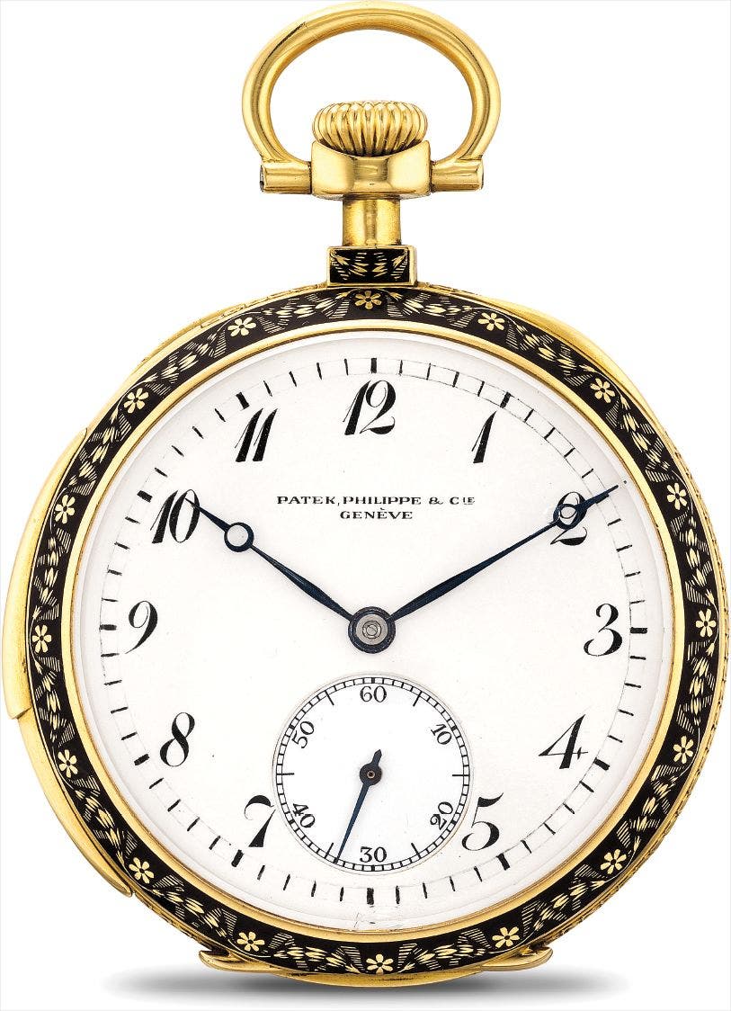 百達翡麗,非常精細及罕有,18K黃金及琺瑯懷錶,配三問及琺瑯錶盤,為William Edgar Wooley於1906年製