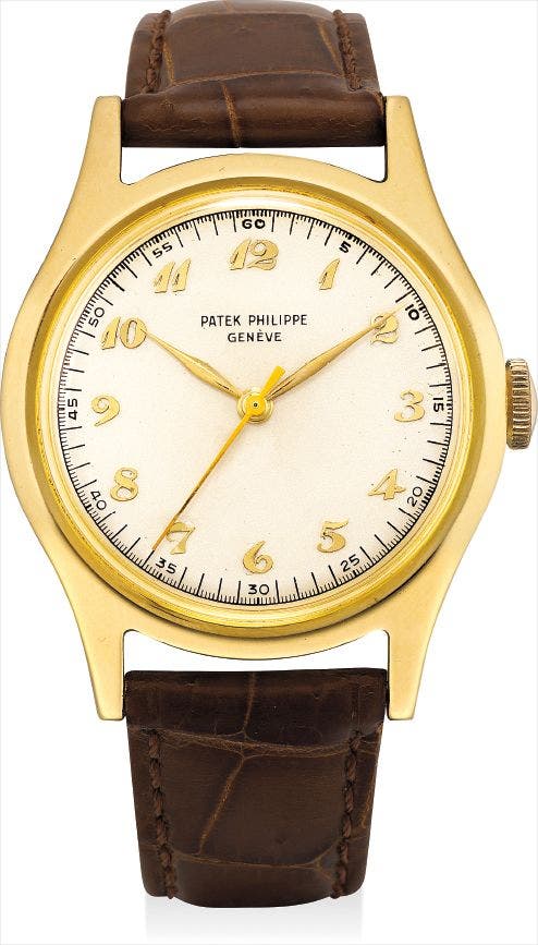 百達翡麗,18K黃金腕錶,配中心秒針及寶璣數字,型號565,1950年製
