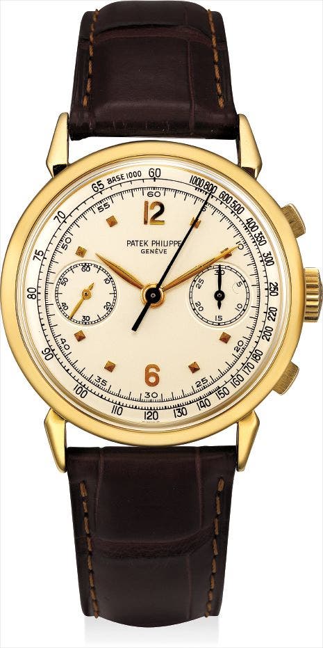 百達翡麗,罕有,18K黃金腕錶,配計時功能,型號1579,1952年製
