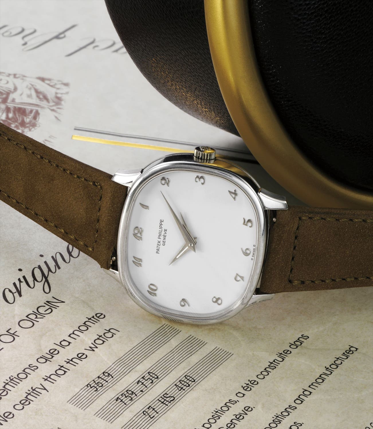 However, the original owner had requested an update to the present dial. Being a faithful client of Patek Philippe, he was granted his wish. The result was a white lacquer finished dial with white gold Breguet numerals, signified by the two sigma symbols flanking "Swiss" at 6 o'clock. This is furthermore confirmed by both the Certificate of Origin and Extract from the Archives - an important detail that is sure to please even the most demanding collector.