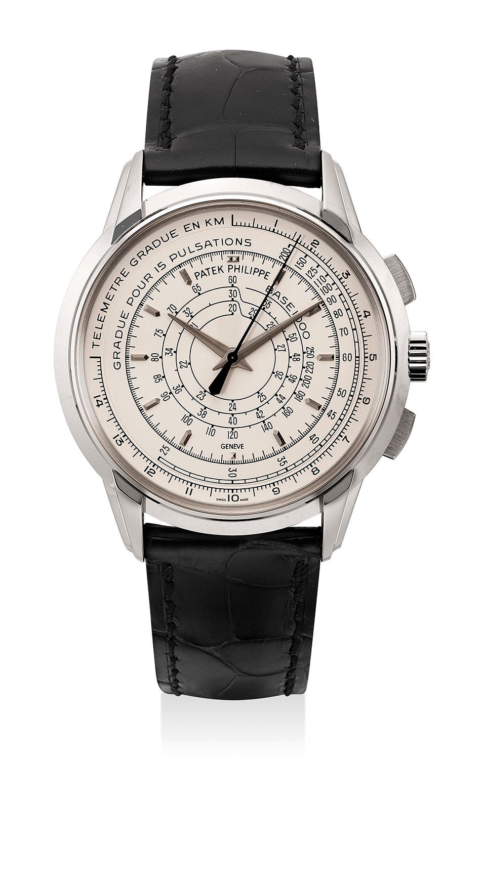 百達翡麗,型號5975G,非常重要及罕有,限量版18K白金自動上弦腕錶,配計時功能,百達翡麗特為175周年推出的特別紀念版,限量400枚,約2014年製。附特製限量錶盒、原裝證書、限量紀念幣