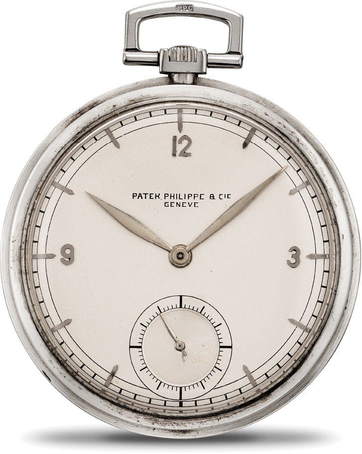 百達翡麗,18白金懷錶,約1930年製。附後補證書