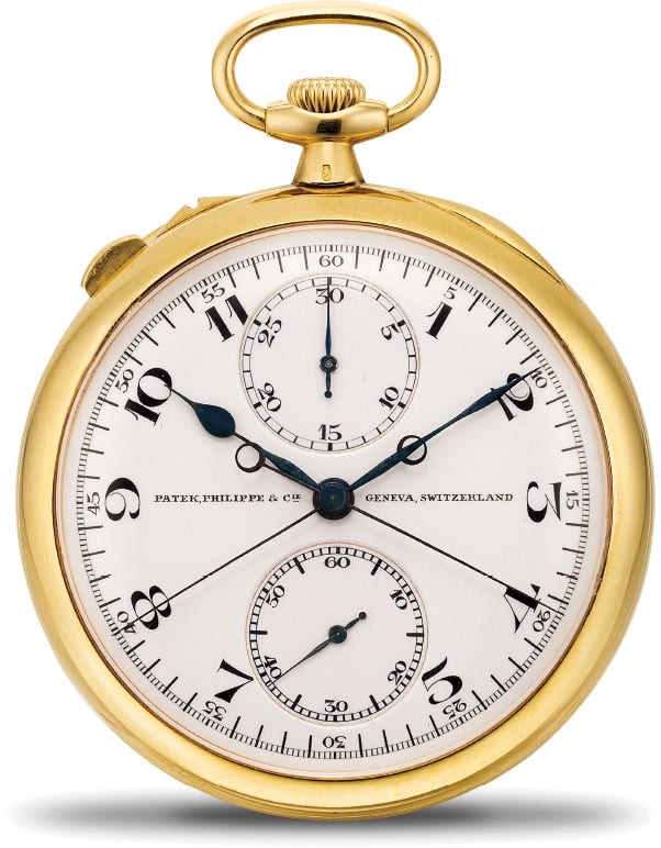百達翡麗,18K黃金懷錶,配追針計時功能,由Shreve & Co.銷售,約1911年製。附後補證書
