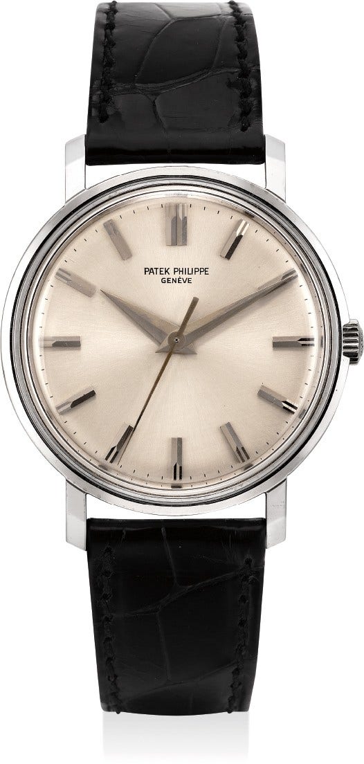 百達翡麗,型號3504,非常精細及十分罕有,18K白金腕錶,配旋入式後底蓋,約1963年製。附後補證書