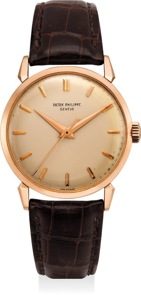 百達翡麗,型號1578,非常精細及罕有,18K玫瑰金腕錶,配「spider lugs」蜘蛛錶耳及進口法國印記,由Jean Guillermin銷售,約1961年製。附後補證書
