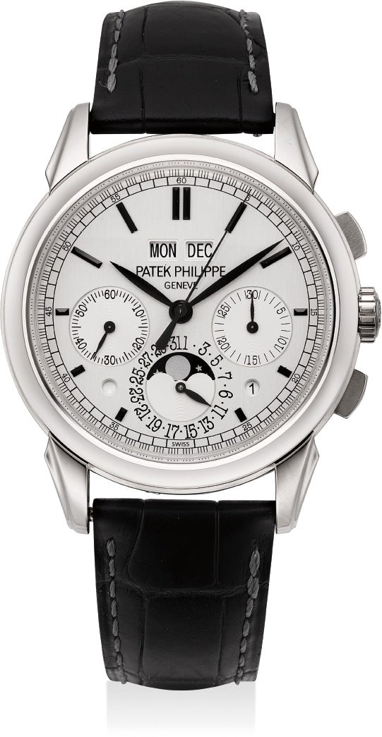 百達翡麗,型號5270G,極度精細及罕有,18K白金腕錶,配萬年曆、閏年週期、月相、日夜顯示和計時功能,約2012年製。附錶盒、原裝證書、後底蓋、調整筆