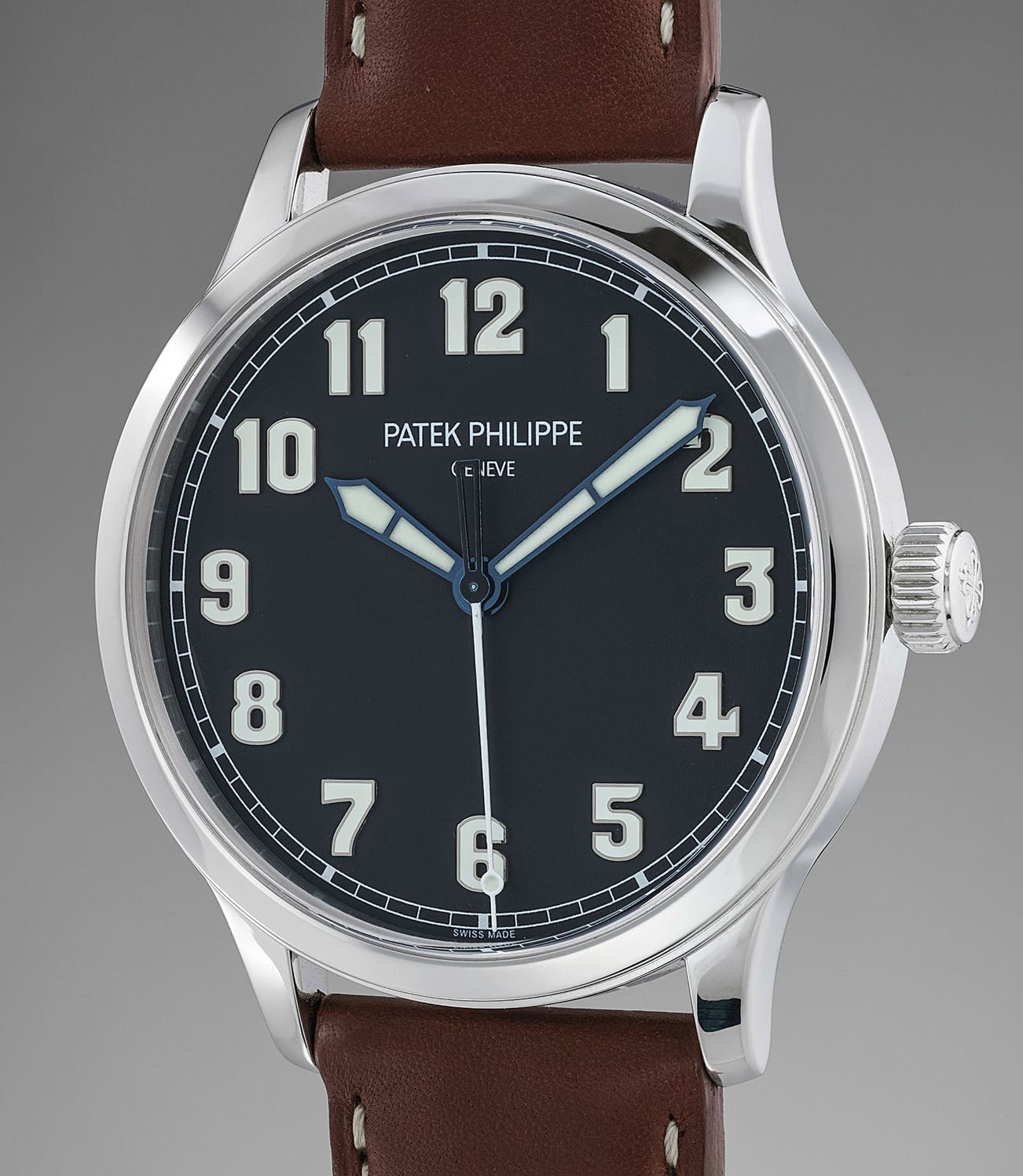 At the occasion of the historical “Art of Watchmaking" exhibition Patek Philippe held in New York in 2017, a new pilot’s watch in steel was introduced as the reference 5522. Limited to 600 pieces and exclusively available through American retailers, this reference was a time only version of the 5524G, featuring the same attractive blue lacquer dial, applied Arabic numerals in 18K white gold with luminous coating, luminous coated blue steel hands and a luminous coated seconds hand tip.