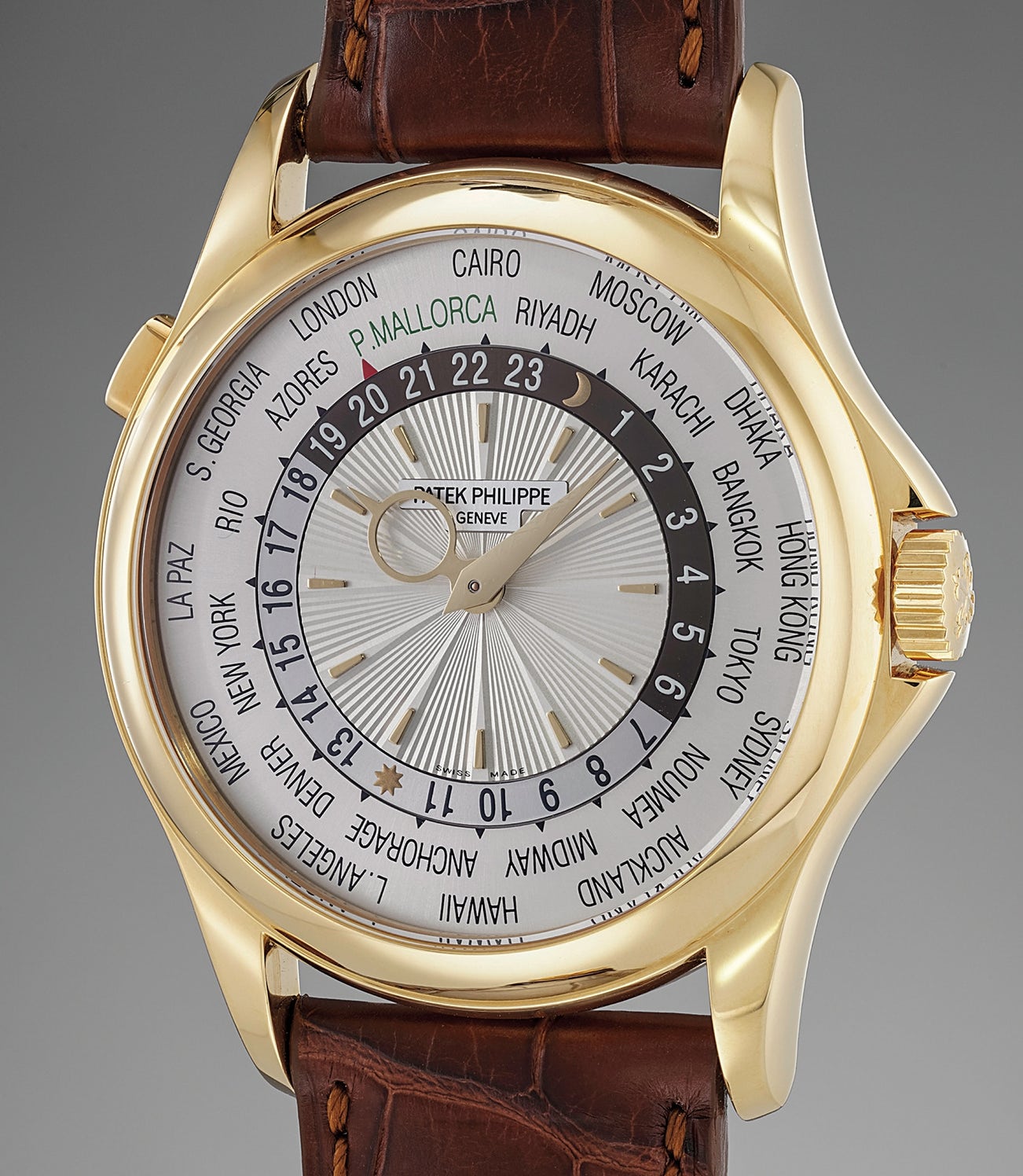 One of two ever made yellow gold worldtime wristwatch with guilloché dial, original certificate and presentation box, produced exclusively for Relojeria Alemana, Palma de Mallorca