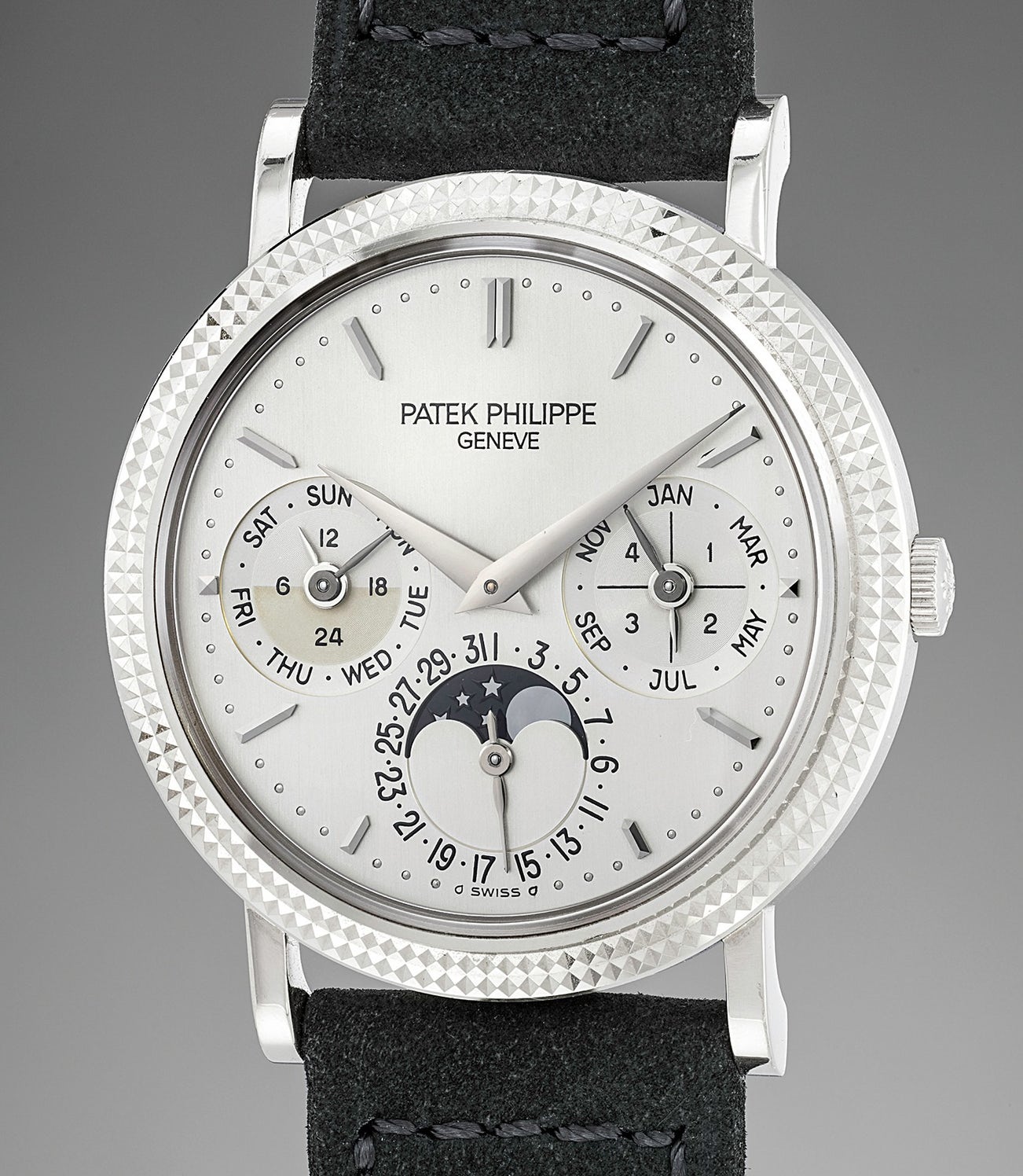 This elegant "black tie" type of watch is part of one of the most exclusive timepieces from Patek Philippe as it is a perpetual calendar. In 1941, Patek Philippe launched the first serially produced perpetual calendar wristwatch. Since then, the references have evolved, adapting their design to the trend and accommodating new features such as leap year or 24-hour indication.
