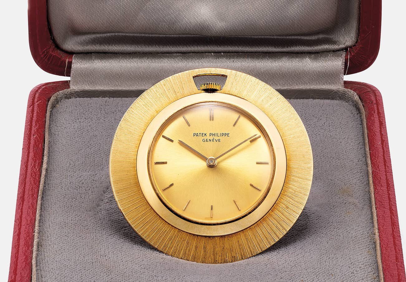 百達翡麗,型號3472,罕有,18K黃金懷錶,配燒青字錶盤,約1963年製。附有紅色皮質古董百達翡麗錶盒、後補證書