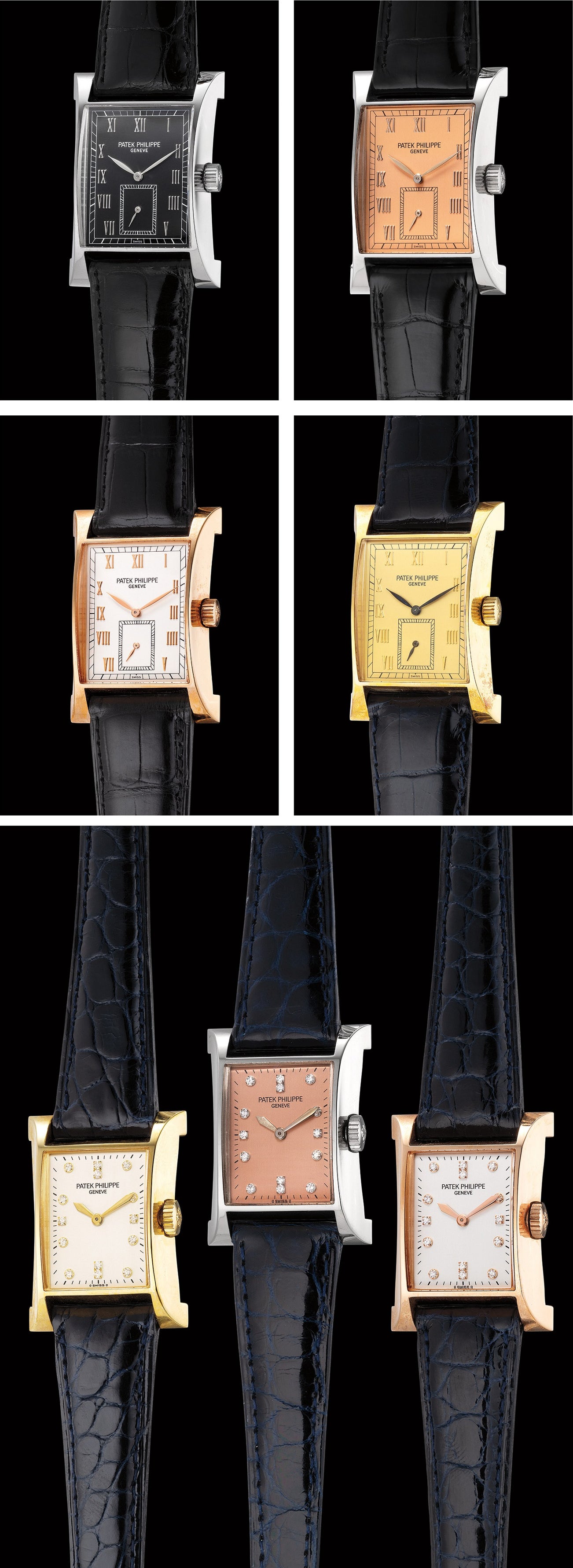 百達翡麗,精細和極度罕有,限量版Pagoda套裝腕錶,包括4枚鉑金、白金、玫瑰金、黃金,男裝腕錶型號5500,和3枚包括白金、玫瑰金、黃金,女裝腕錶型號4900,1997年製。附特製限量錶盒、原裝證書、天文台證書、限量紀念幣 1997年百達翡麗為慶祝日內瓦的新廠房落成啟用,特別限量發行Pagoda型號5500,黃金版本1100枚、玫瑰金版本500枚、白金版本250枚、鉑金版本150枚,僅生產共2000枚;女裝型號4900限量發行,黃金版本500枚、玫瑰金版本150枚、白金版本100枚,僅生產共750枚。百達翡麗為保證日後無法再發行該型號,於腕錶發行後特意將相關模具永久銷毀。 富藝斯極為榮幸,為各界藏家呈獻一套精美難得的Pagoda套裝腕錶,附原裝7件裝百達翡麗特製錶盒,腕錶品相如新、配件齊全,難得一見、珍貴罕有。