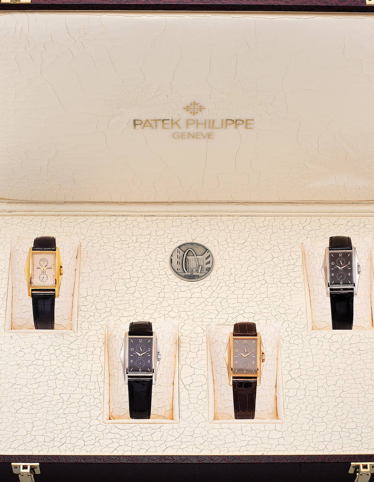 百達翡麗,型號5100,極度罕有,限量版十日鍊腕錶,包括鉑金、白金、玫瑰金、黃金共4枚板本套裝,2000年製。附錶盒、原裝證書、天文台證書、限量紀念幣 百達翡麗為慶祝千禧年,特別限量發行十日鍊型號5100,黃金版本1500枚、玫瑰金版本750枚、白金版本450枚、鉑金版本300枚,僅生產共3000枚。搭載當時首度研發的長方形天文台機芯,配置 透明後蓋,藏家可以隨時一覽機芯之美。 富藝斯極為榮幸,為各界藏家呈獻一套精美難得的百達翡麗十日鍊套裝腕錶,品相如新、配件齊全,深具收藏價值。