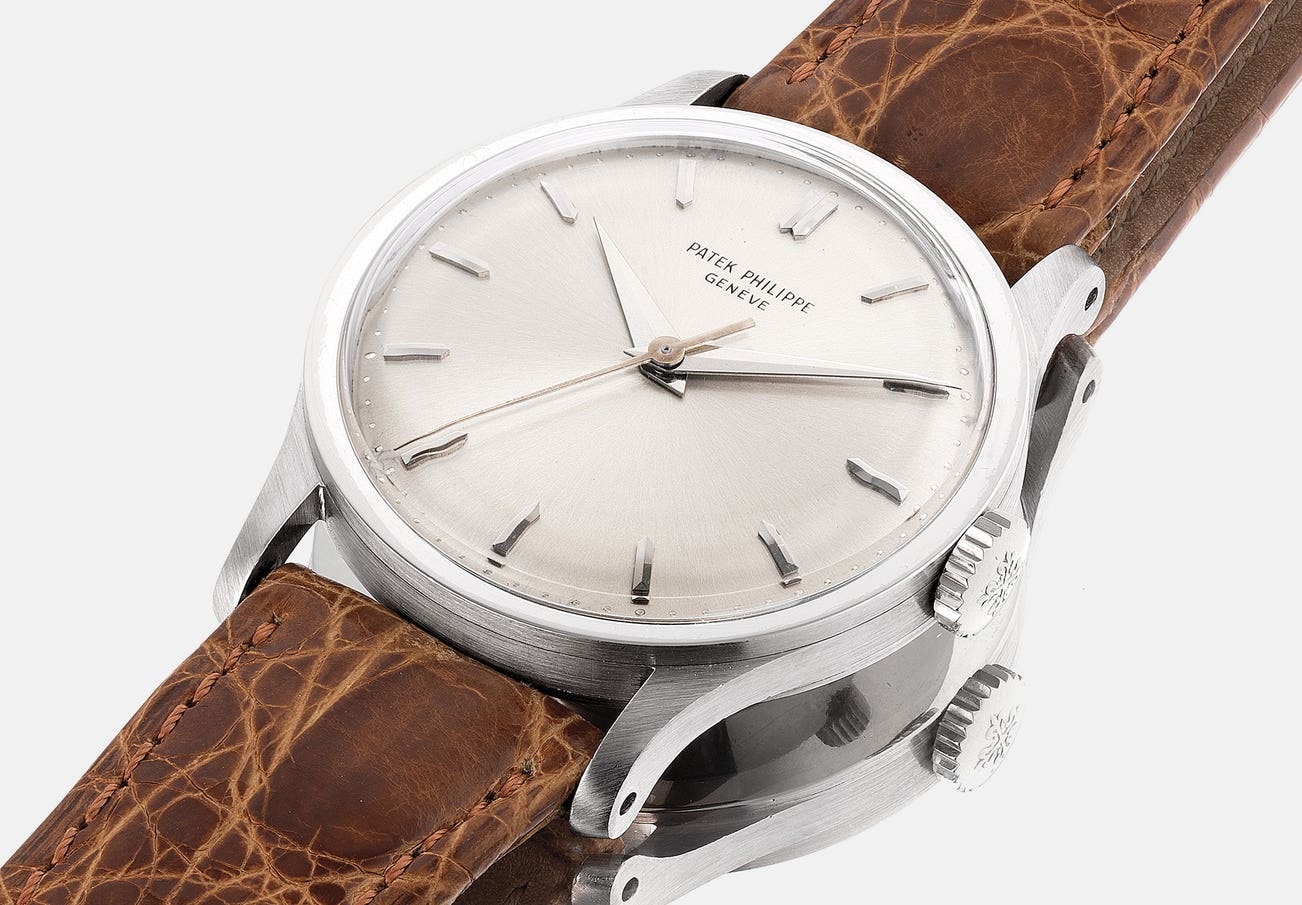 百達翡麗,型號570,精細及十分罕有,18K白金大三針腕錶,1965年製。附錶盒和後補證書