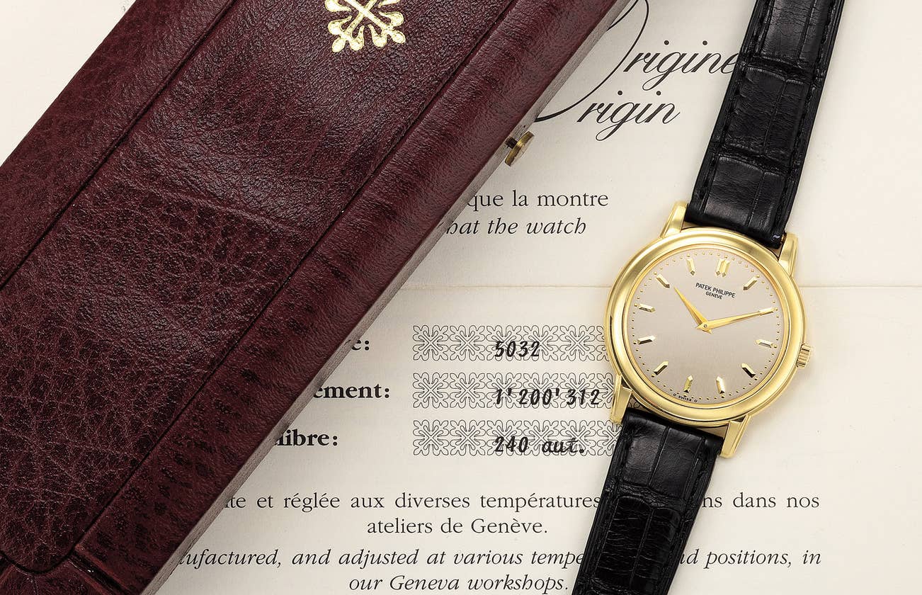 百達翡麗,型號5032,精細,18K黃金自動上弦腕錶,1995年製。附原裝錶盒和原裝證書