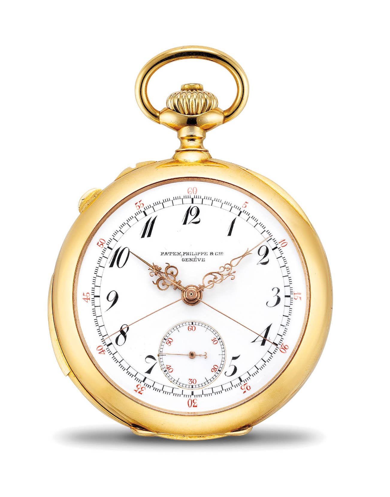 百達翡麗,非常精細及罕有,18K黃金三問追針計時懷錶,由J. H. Leyson, Butte Montana銷售,1900年製。附後補證書