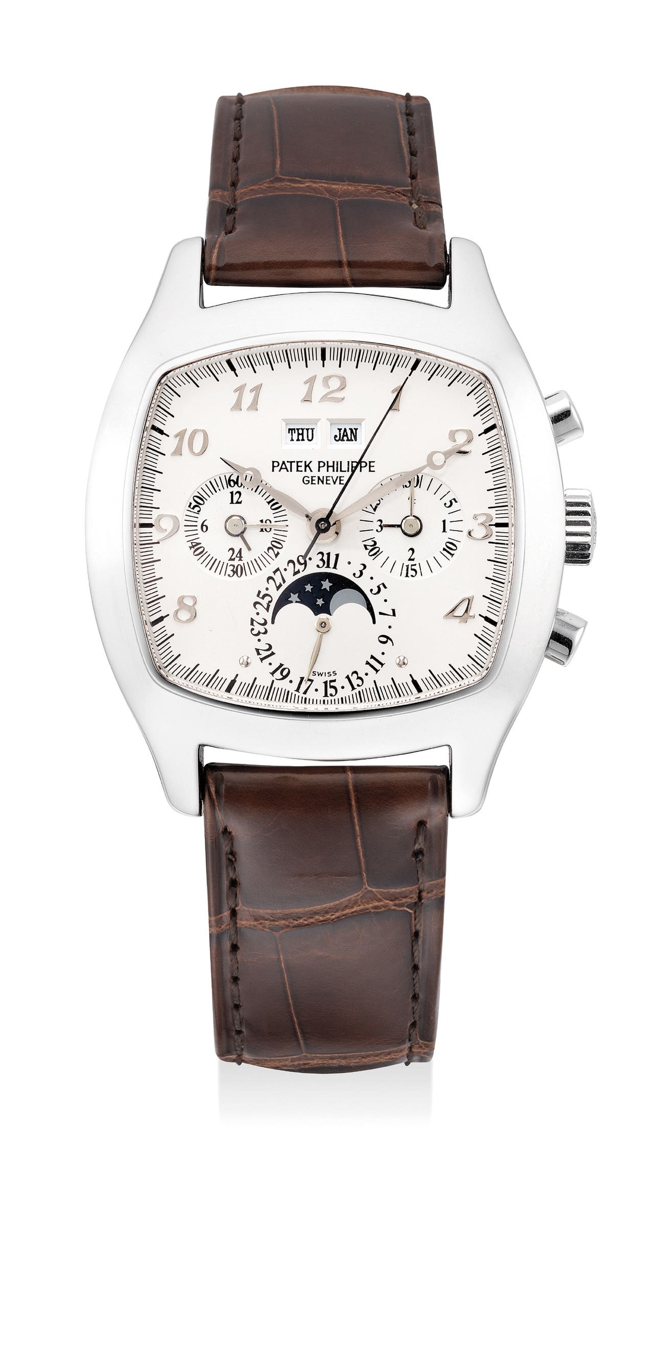 Serviced in 2008 and under the request of the previous owner during a factory overhaul, Patek Philippe provided an additional silvered dial with Breguet numerals. Further enhancing the attractiveness and desirability of the present lot. This is without a doubt one of the most collectible modern Patek Philippe modern complication.