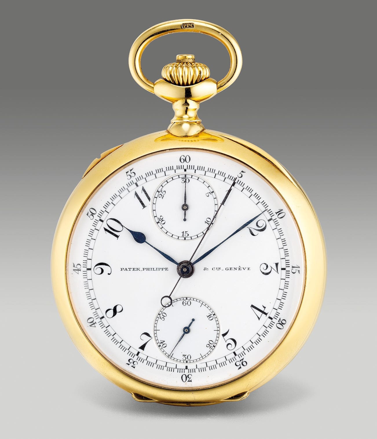 百達翡麗,精細,18K黃金獵蓋計時懷錶,備琺瑯錶盤、直線式30分鐘計時子盤,1907年製。附後補證書