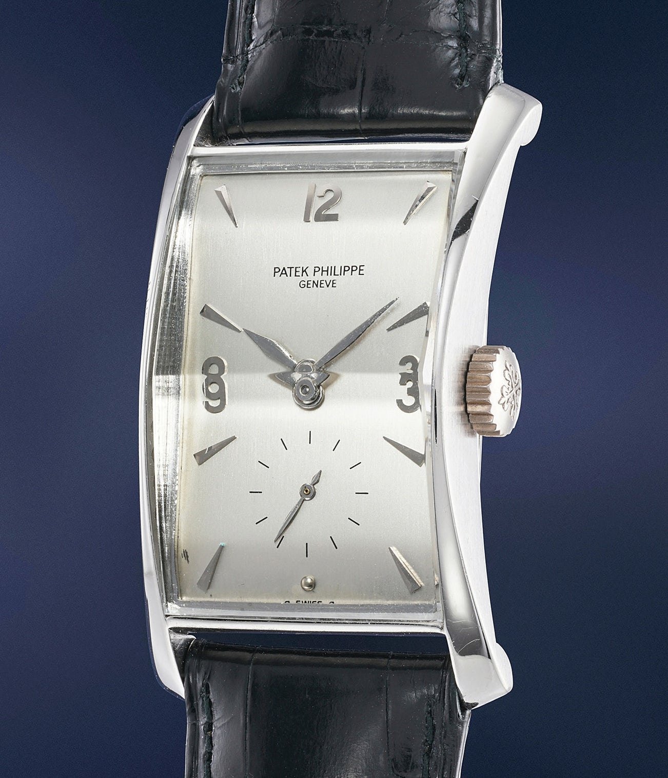 Today, the reference 1593 is a classic amongst collectors, coveted for its large size and elegant refinement. The majority of examples were made in yellow gold with fewer in pink gold. Platinum-cased examples like the present lot are the rarest and most exclusive versions. This particular example is preserved in excellent condition with a crisp hallmark beneath the lug.