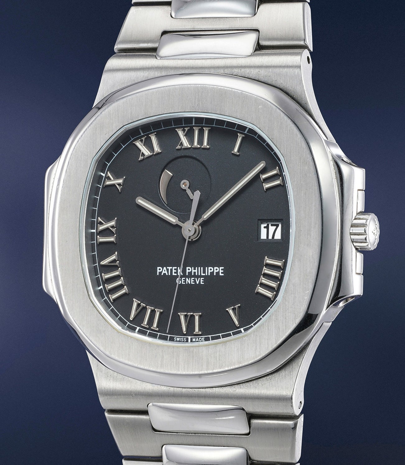 Reference 3710 is a historically important model within the Nautilus production. Launched in 1998 and in production until 2004/2005, it was the first Nautilus model to feature a complication (other than a date indication) and even though it retained the smooth dial with Roman numerals as found in the reference 3800 it signed the return of the “Jumbo” sized 42mm case size of the reference 3700.
